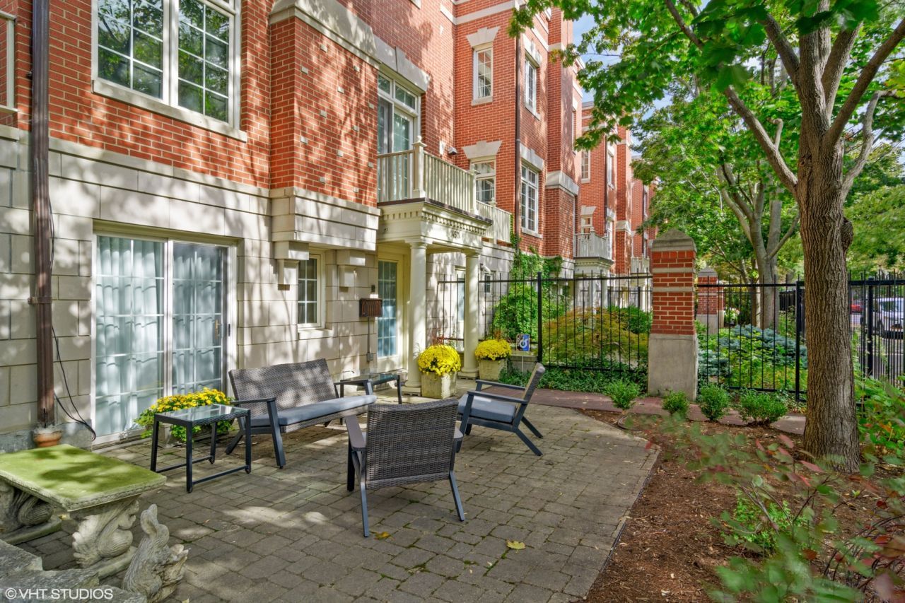 Rare Extra Wide Sun-Drenched Corner Townhome in Lincoln Park's Embassy Club that Lives like a Single Family! This gorgeous 3 Bedroom, 2.5 bath South-Facing Townhome was recently renovated with designer finishes. Incredible layout flows perfectly between 3 floors of living space and 3 outdoor areas including a enormous gated and fully landscaped front terrace. Main floor is a Great Room surrounded by windows and has 2 easily accessible balconies perfect for entertaining. Chef's kitchen with custom millwork white shaker cabinets, SS appliances, oversized island with marble counters, full height backsplash and custom lighting. Kitchen opens up to a large Dining and Living rooms surrounded by windows overlooking Wrightwood Park. Third floor features all 3 bedrooms and laundry. Large Primary bedroom has tons of natural light, ensuite with gorgeous spa like experience master bathroom with dual vanities, walk in shower and separate soaking tub surrounded in white marble. Lower level family room with large closet that can be used as a 4th bedroom. Throughout the home you will find updates such as beautiful oak flooring, window treatments, custom closet shelving, Large hot water heater, high efficiency furnace and AC. Includes Attached 1 car heated garage with additional storage units. Amazing location in Lincoln Park - across the street from Wrightwood Park and playgrounds, playing fields and a pool. You are just a few minutes walk to the Southport Corridor, and minutes away to Midtown Athletic club, Costco, grocery shopping and restaurants! Available 6.1
