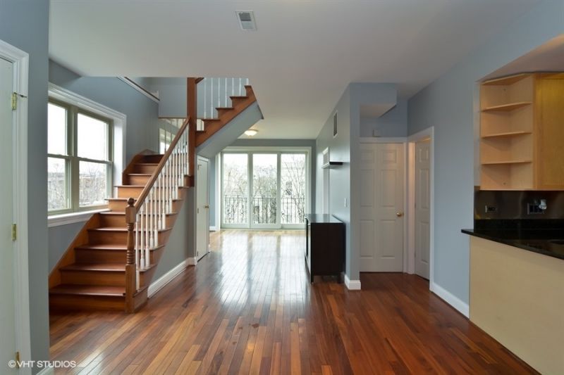 This stunning Wicker Park 2BD/2BA duplex corner unit is filled with incredible natural light from the east, north, and south, creating a bright and inviting living space throughout. The main level features an open-concept living, dining, and kitchen area with a seamless flow, perfect for both everyday living and entertaining. The kitchen is equipped with stainless steel appliances, including a microwave, dishwasher, and garbage disposal, along with a spacious island and pantry for added storage. The living room boasts floor-to-ceiling windows that open to allow for a refreshing cross breeze on sunny days. The first bedroom comfortably fits a queen bed with additional furniture and includes a walk-in closet with a custom organization system. A full bathroom on this level offers a deep soaking tub, granite countertops, and ample storage. You'll also find a coat closet at the entry and additional storage tucked under the stairs. Upstairs, a second living area provides access to a private roof deck that spans the width of the building and offers unobstructed views of downtown. The primary suite is generously sized to accommodate a king bed with side tables and features a walk-in closet and a luxurious en-suite bathroom complete with a double vanity, walk-in shower, and large soaking tub. Additional highlights include central heat and air, in-unit laundry, and one garage parking space with extra storage included in the rent. This sun-filled home offers a truly unique layout in a prime Wicker Park location. Mandatory Resident Benefit Package additional $40.00 per month; includes renters insurance, positive credit reporting for on-time rental payments, identity fraud protection and more. Presented by Fulton Grace Realty, Chicago, IL.