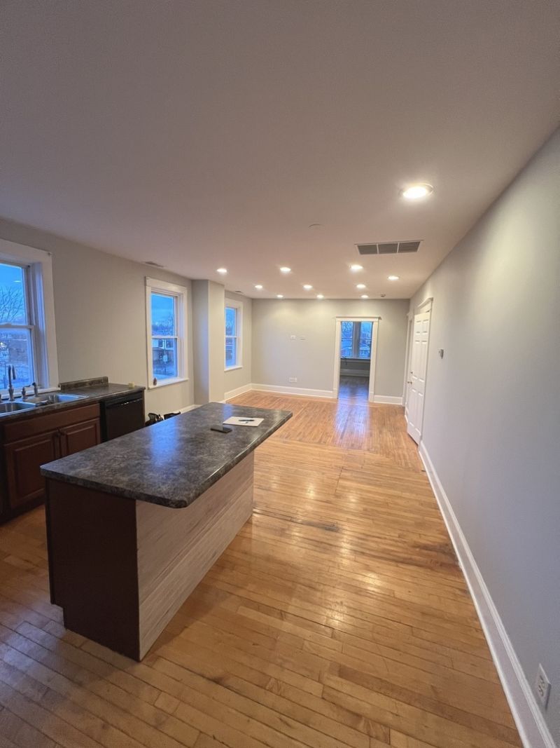 Clean, updated and well taken care of apartment above the Vine and Plate restaurant, next to Taco Bell. This space offers 2 good sized bedrooms, a large kitchen with island and room for a table, and original hardwood floors. There are 2 dedicated (Tandem) parking spaces in the back of the building. Although there is no laundry in the building, there is a Laundromat right across the street. Close proximity to downtown, the Metra, and all the dining and shopping you could ask for. Water, sewer and trash are included. Sorry, no pets allowed. **Must have a credit score of 650+**.