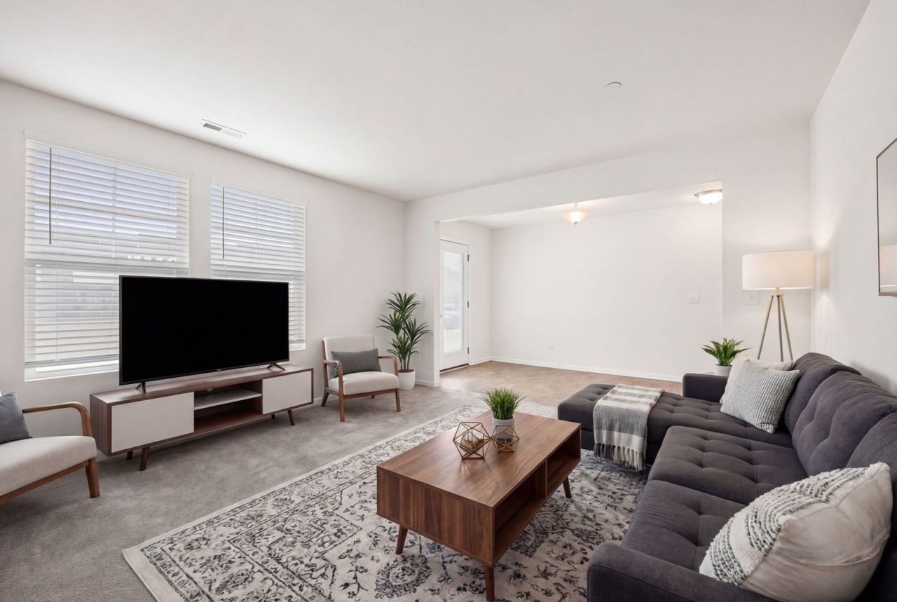 This stunning 3 bedroom, 2.5 bathroom townhouse in Uptown at Seven Bridges offers 2,240 square feet of beautifully designed living space across three thoughtfully planned levels. Open concept main level features a spacious family room with carpeting, ceiling fan, and large windows that access a spectacular 20x5 balcony recently replaced by the HOA in 2025. Kitchen boasts granite countertops, chestnut-colored cabinets, stainless steel refrigerator, black stove with exhaust hood, and a large center island with seating for four, dishwasher, sink, and elegant pendant lighting. Dining area flows seamlessly from the kitchen and includes a bar area added in 2020, perfect for entertaining. Recessed lighting illuminates the entire main level, while a convenient powder room completes this floor. Upper level includes all three bedrooms, including a primary suite with carpeting, large windows, and walk-in closet. Primary en-suite bathroom features a private toilet room, walk-in shower, double sink vanity, and linen closet. Two additional bedrooms share a full hall bathroom with shower/tub combo. Laundry closet on this level adds convenience. Lower level provides entry from the 2-car attached garage or the foyer that opens to a versatile living room with carpeting, perfect as a home office, fitness room, or flex space. Utility room completes this floor. Enjoy effortless living just minutes from popular dining destinations like Jam 'n' Jelly Cafe, Starbucks, and Ike & Oak Brewing, premier golfing at Seven Bridges Golf Club, convenient shopping, and even nearby skiing at Four Lakes. Schedule a showing today!