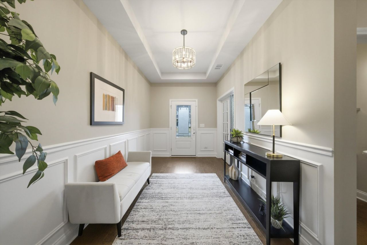 Welcome to the beautifully upgraded Lyon ranch model in the sought-after Loretto Club of south Wheaton. Built by Pulte Homes beginning in 2018-2020 on the former Loretto Convent site, this upscale enclave is ideally situated at the end of Somerset Lane between Chicago Golf Club and Seven Gables Park. Residents enjoy direct walking path access to the park's 66.5 acres of trails, sports fields, and tennis courts, while being just one mile to Danada Square and less than three miles to downtown Wheaton. Located west of Naperville Road and north of Butterfield Road, and served by Wheaton Community Unit School District 200. This spacious single-story home offers open-concept living with numerous upgrades throughout. Highlights include upgraded hardwood flooring, crown molding, tray ceilings, an elevated living room ceiling, and a gas fireplace. The kitchen features a walk-in pantry, quartz countertops, oversized island, KitchenAid gas cooktop, built-in oven and microwave, dishwasher, and Frigidaire Gallery refrigerator. LG washer and dryer are also included. The luxurious primary suite boasts an upgraded spa-style shower with rain showerhead, handheld, and four body sprays. A full unfinished English basement provides excellent storage or future expansion potential. Enjoy morning coffee in the dining area overlooking your covered deck, with views of mature trees, professional landscaping, Seven Gables Park & Chicago Golf Club. The professionally landscaped yard includes a sprinkler system and a new concrete patio perfect for grilling. Custom window treatments and drapes are included throughout the home. Experience low-maintenance living at its finest with HOA-covered lawn care and snow removal in one of Wheaton's most desirable communities.